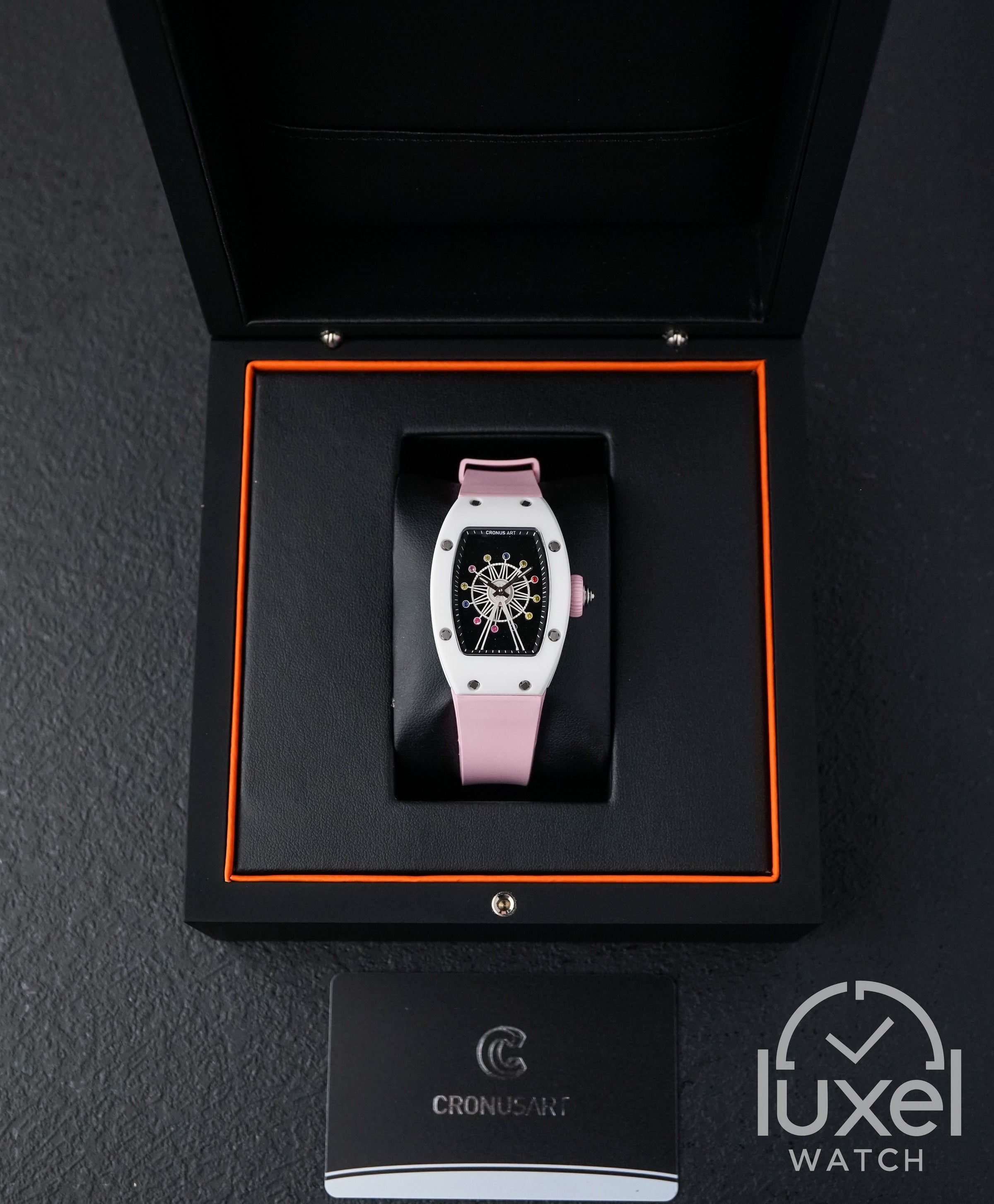 Dengan Cronus Art High-Tech Ceramics White Ferris Wheel Pink Strap, Anda akan memiliki sebuah perhiasan tak tertandingi yang mencerminkan keanggunan dan kemewahan. Dibuat dengan casing keramik teknologi yang eksklusif, jam tangan ini bukan hanya sebuah penanda waktu, tetapi juga karya seni yang mempesona. Gerakan Swiss QUARTZ yang diandalkannya memberikan ketepatan waktu yang tidak tergoyahkan, sementara kaca safir dengan kekerasan super Mohs 9 memberikan perlindungan maksimal terhadap goresan, menjaga kejernihan visual yang tak terhingga. Dirancang untuk menarik perhatian, tali karet pink yang menghiasi pergelangan tangan Anda dengan anggun dan menambahkan sentuhan kemewahan pada setiap penampilan. Dengan garansi 2 tahun, jam tangan ini tidak hanya menjanjikan gaya yang tak tertandingi, tetapi juga kepercayaan diri yang tak ternilai.