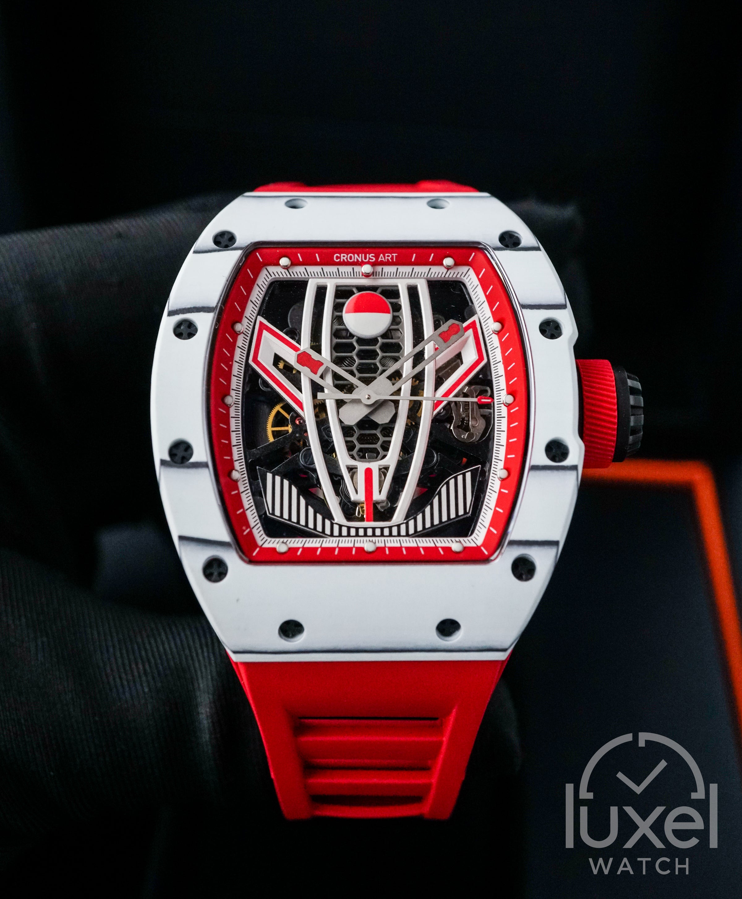 Jam tangan Cronus Art NTPT Carbon Fiber Pride Of Indonesia dibuat dengan desain yang futuristik dan kokoh berkat case NTPT Carbon Fiber berukuran 50mm x 42mm, meraih perhatian sebagai koleksi limited edition yang hanya diproduksi sebanyak 100 buah di seluruh dunia. Jam tangan ini menawarkan kombinasi yang mengagumkan antara eksklusivitas, kualitas material tinggi, dan performa handal. Jam tangan ini juga menjadi simbol kebanggaan bagi bangsa Indonesia, dengan detail-detail yang merujuk pada kekayaan budaya dan keindahan alam negeri ini. Dibekali dengan spesifikasi impresif seperti frekuensi 28.800vph, power reserve selama 42 jam, dan tahan air hingga 50 meter, serta disertai strap karet merah yang kontras, jam tangan ini tidak hanya memikat penggemar jam tangan yang menghargai keunikan dan prestise, tetapi juga menjanjikan pengalaman yang istimewa bagi setiap pemiliknya.