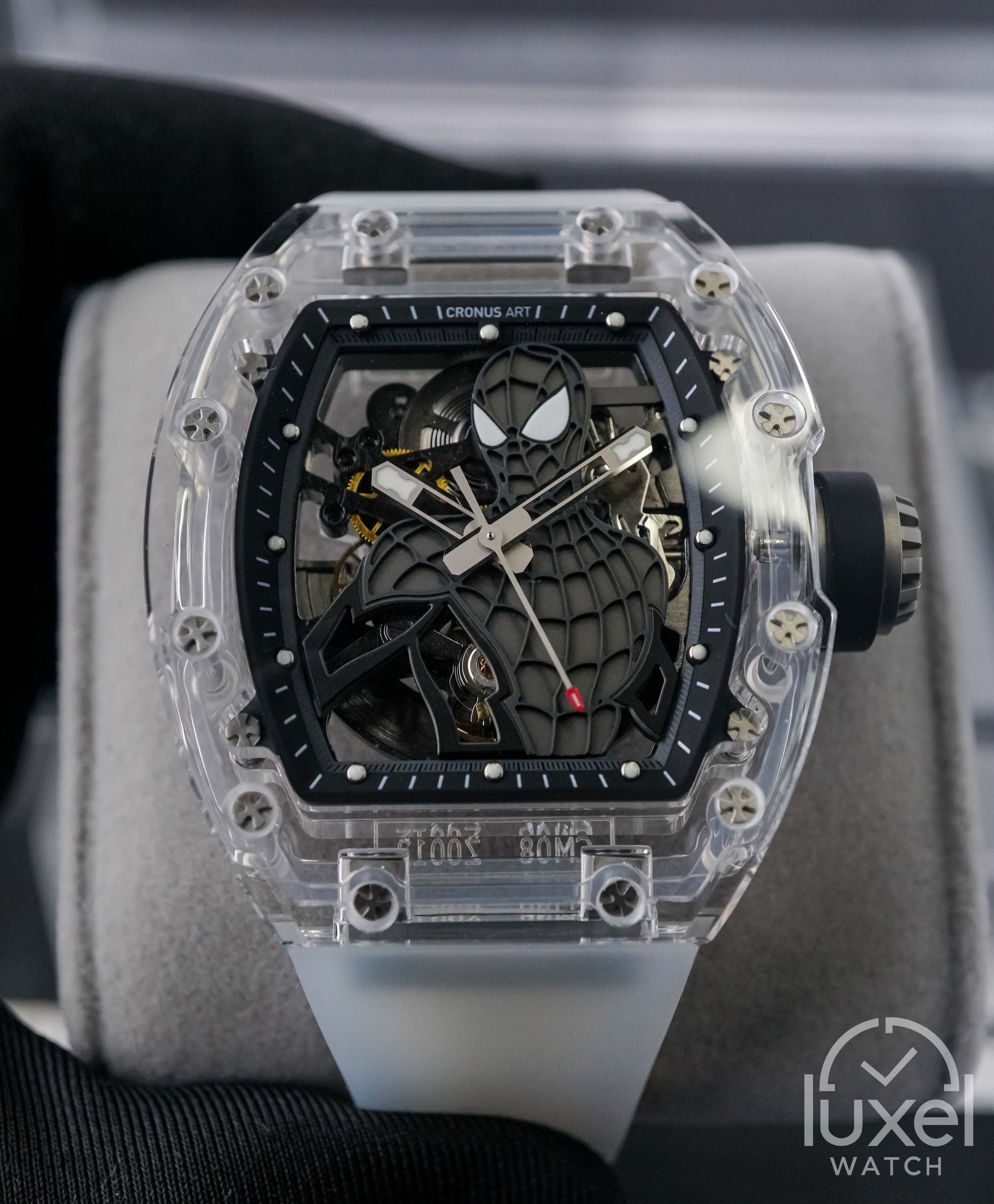 Cronus Art Sapphire Series Special Edition Black Spiderman - Kekuatan legendaris Spiderman di setiap inci. Dengan casing sapphire ilmiah yang kokoh dan ketahanan air hingga 30 meter, jam tangan ini adalah pilihan yang luar biasa bagi para penggemar yang menginginkan jam dengan karakter yang kuat dan desain yang istimewa.