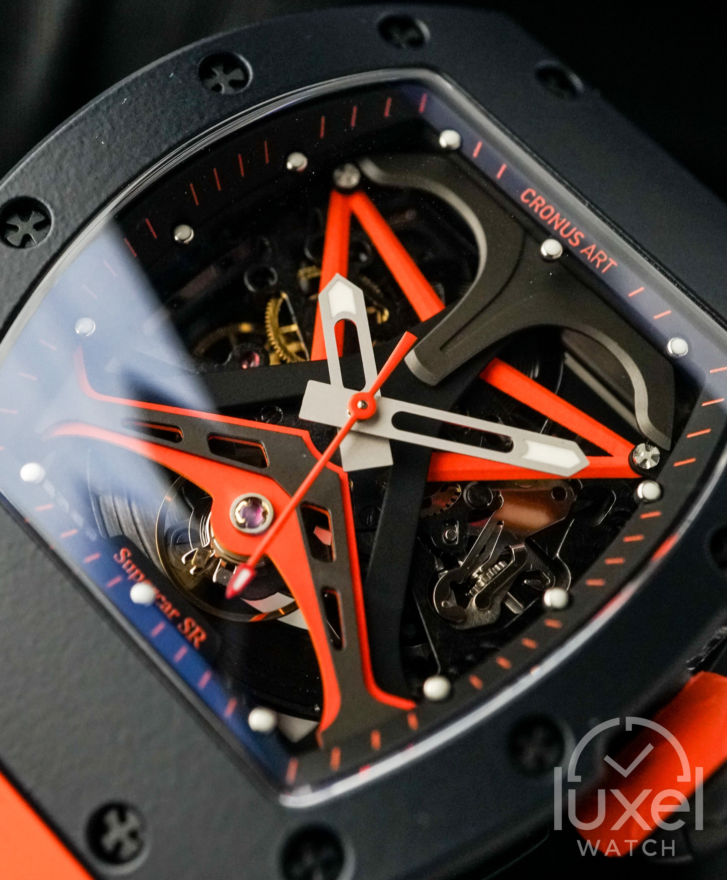 Cronus Art mempersembahkan Supercar SR Pagane Orange Black, sebuah jam tangan yang memancarkan kekuatan, ketangguhan, dan gaya yang menawan. Dibalut dalam casing Carbon Composition berukuran 42.1mm x 49.9mm, jam ini menawarkan daya tahan luar biasa dengan tampilan yang futuristik. Desainnya yang terinspirasi dari dunia supercar memberikan kesan dinamis dan modern, sementara kombinasi warna oranye dan hitam yang kontras membuatnya tampil berani dan mencolok. Jam tangan ini adalah pilihan sempurna bagi mereka yang menghargai kekuatan desain dan performa.