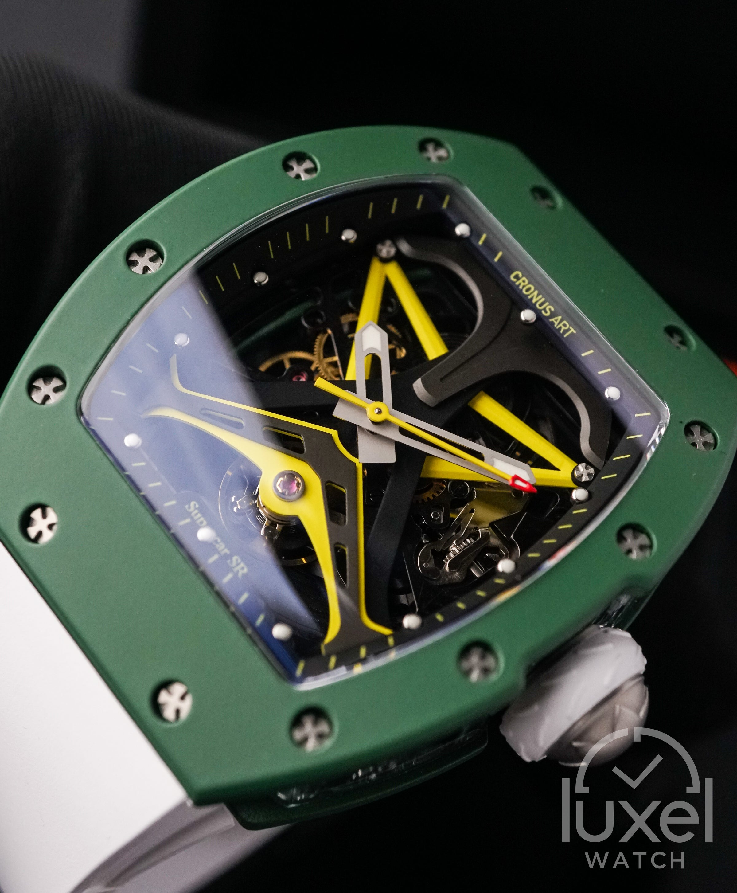 Supercar SR Pagane Yellow Green dari Cronus Art menghadirkan keseimbangan antara keanggunan desain dan performa superior. Dengan casing berbahan Carbon Composition berukuran 42.1mm x 49.9mm, jam ini memberikan daya tahan yang luar biasa, sekaligus tampilan modern yang kuat. Terinspirasi dari dunia supercar, kombinasi warna kuning dan hijau yang cerah memberikan nuansa dinamis dan energik, ideal bagi mereka yang mencari jam tangan yang dapat menyatu dengan gaya hidup aktif namun tetap tampil memikat.