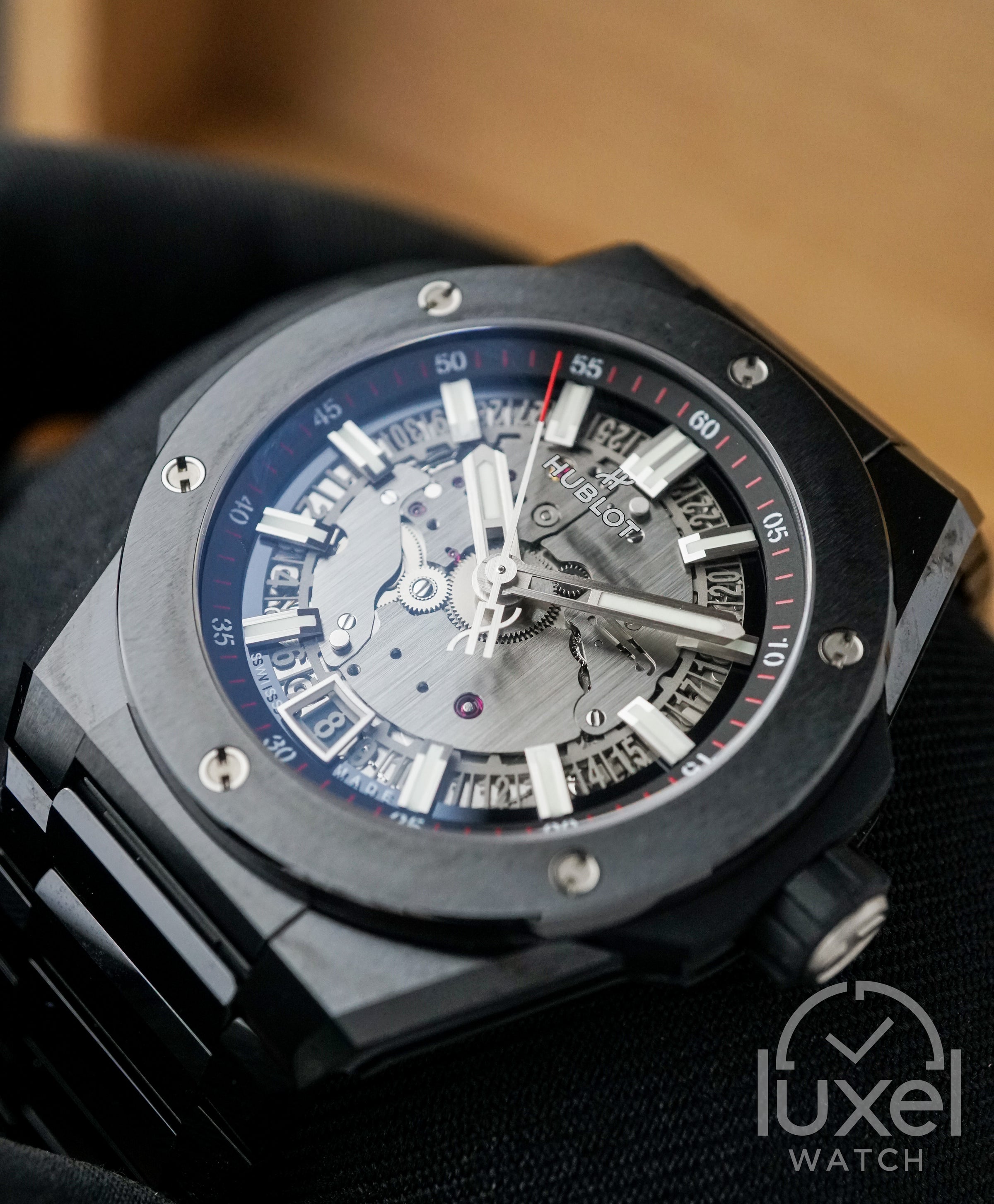 Sebuah mahakarya dari Hublot yang menggabungkan desain avant-garde dengan material modern dalam satu paket eksklusif. Dibalut dalam case 40mm dari keramik hitam yang elegan, jam tangan ini menampilkan dial skeleton yang artistik dan fungsi tanggal yang halus pada posisi jam 6, memberikan tampilan yang memukau sekaligus futuristik.