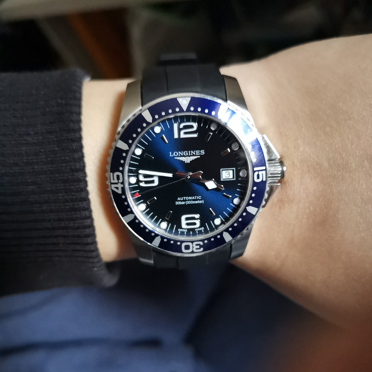 "Jelajahi kedalaman dengan Longines Hydroconquest dan rasakan kekuatan di tangan Anda."