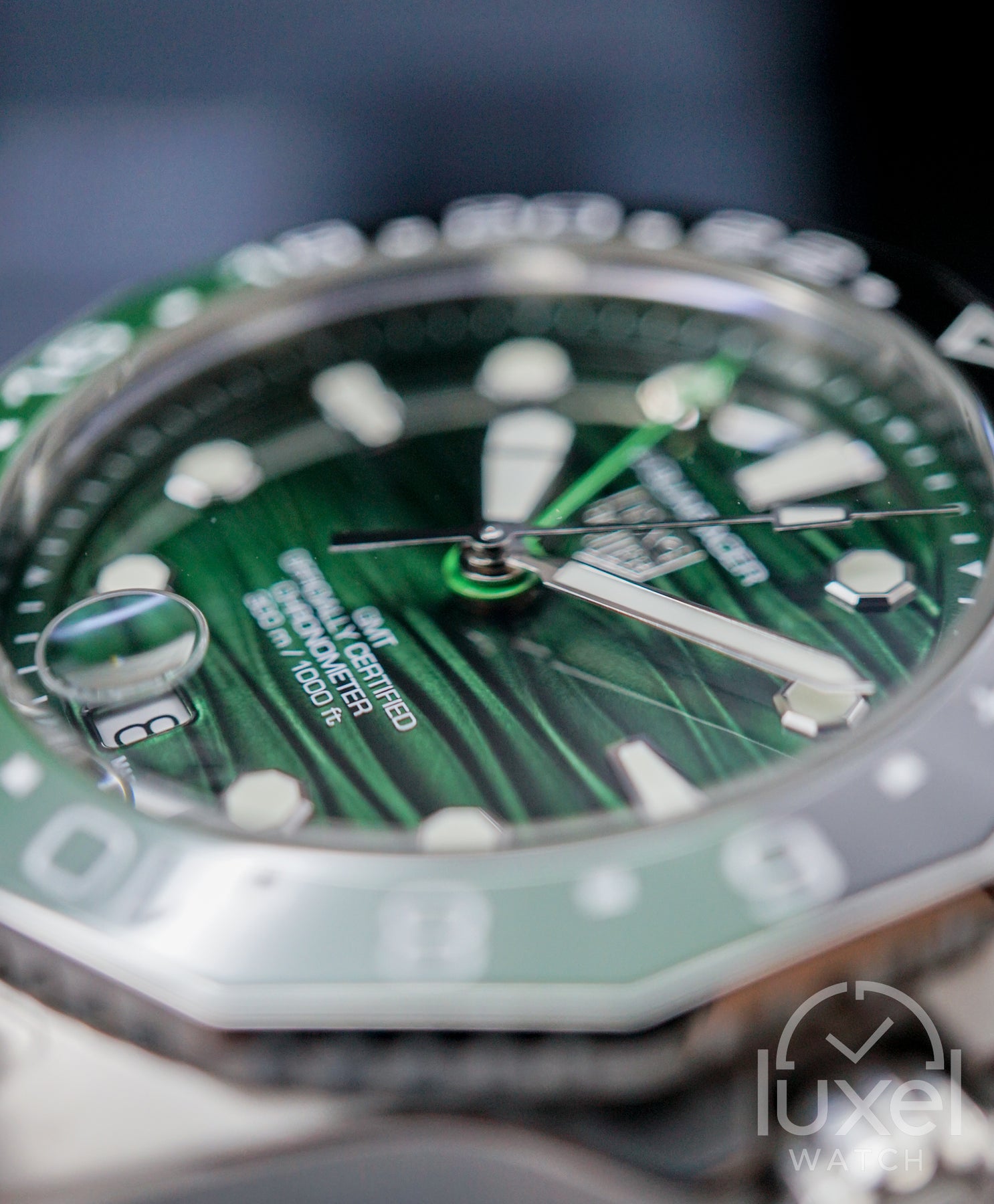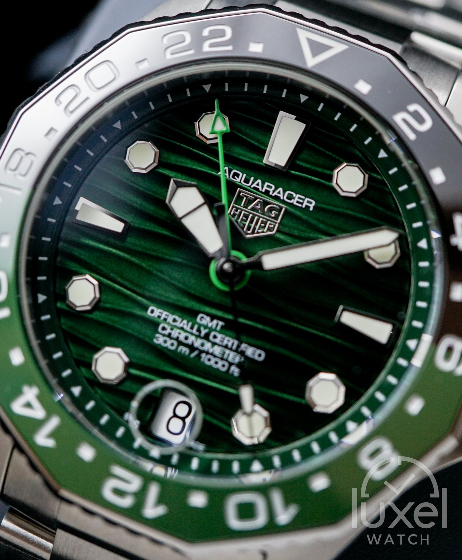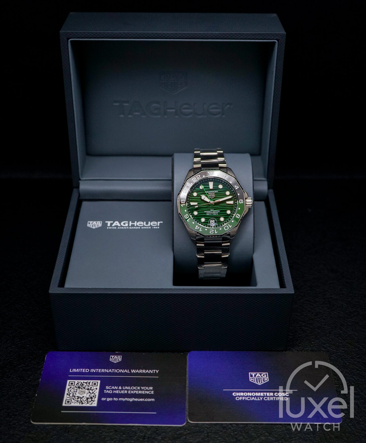 TAG Heuer Aquaracer Professional 300 GMT — Green Sunray Dial Steel Bracelet