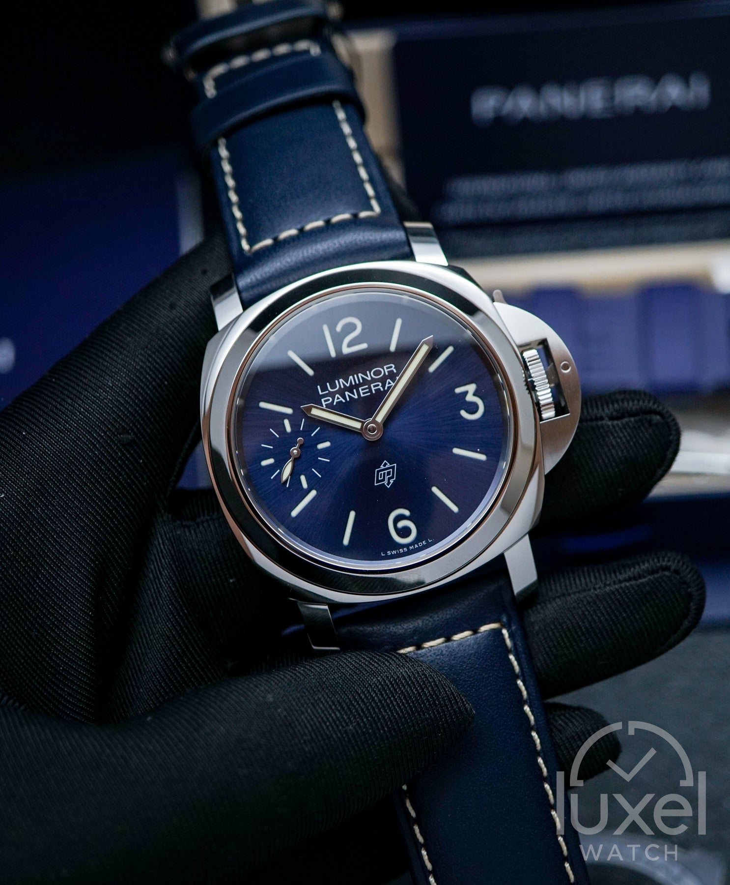 Panerai Luminor Blu Mare PAM1085 menampilkan case stainless steel berukuran 44mm yang kokoh dan berkelas. Dial biru sun-brushed dengan angka Arab bercahaya memberikan keindahan dan visibilitas maksimal. Dilengkapi dengan tali kulit biru tua dan tambahan strap karet biru, jam ini memberikan fleksibilitas untuk berbagai kesempatan.
