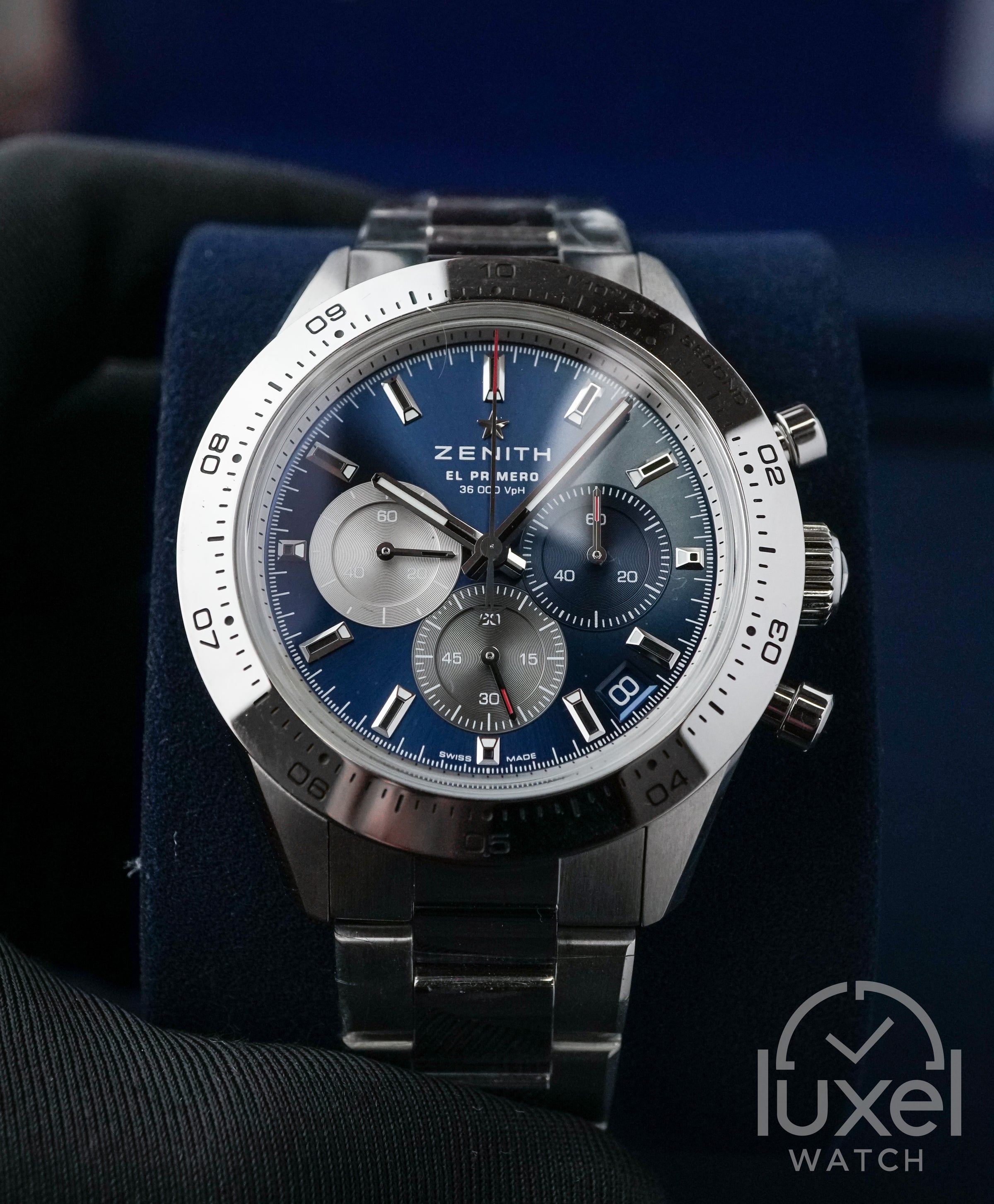 Dalam dunia jam tangan, Zenith Chronomaster Sport with blue sunray dial bracelet stainless steel adalah pencerminan keindahan yang menghipnotis. Dengan case berdiameter 41mm yang terbuat dari stainless steel dan bezel berkilap, jam tangan ini tak hanya menjadi aksesori, melainkan sebuah karya seni yang menakjubkan. Dial metalik berpola sinar matahari biru dengan tricolour counters menciptakan aliran energi visual yang memikat, seperti pantulan kilauan matahari di atas air yang tenang.