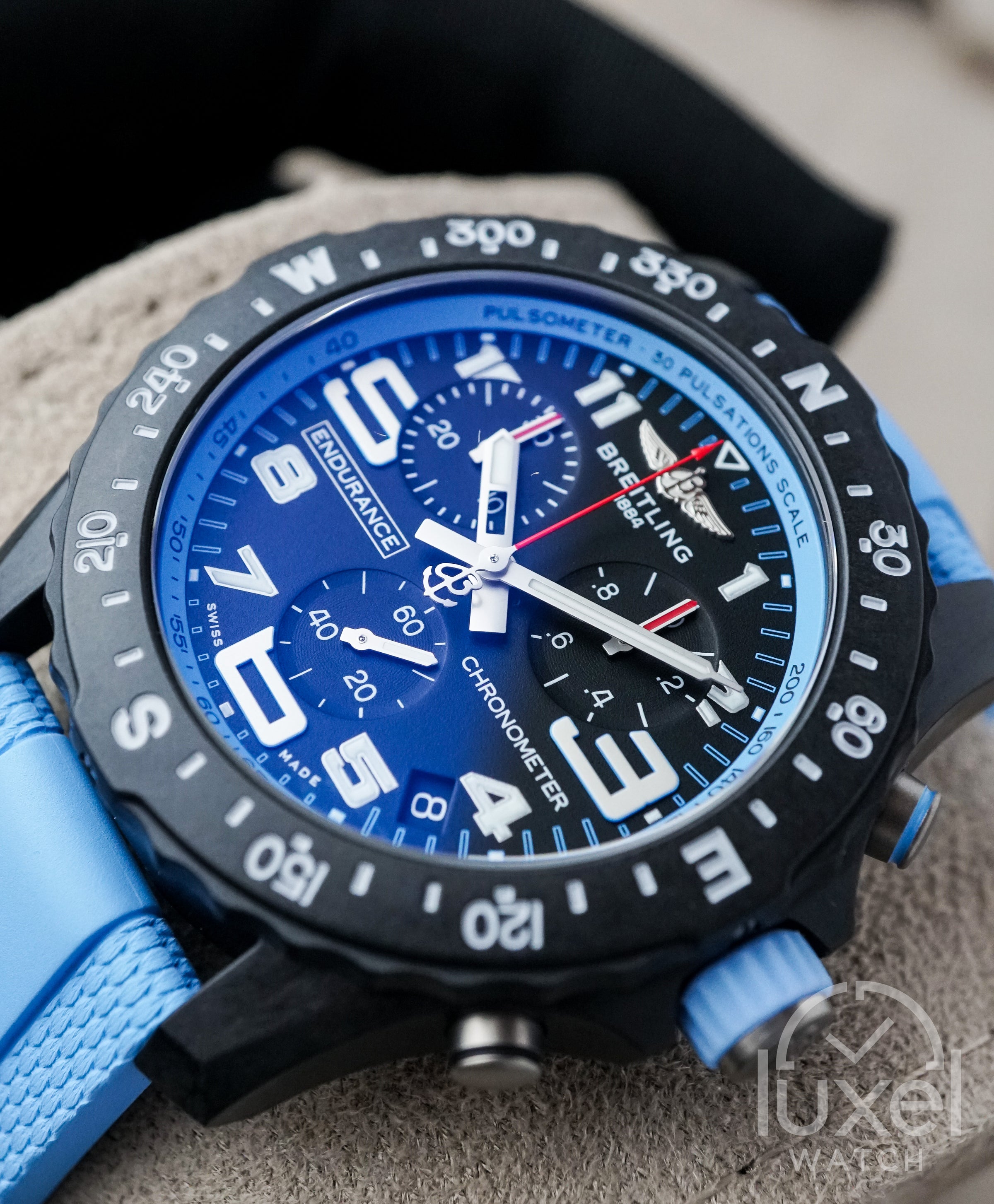 Ditenagai oleh Breitling 82 Thermocompensated SuperQuartz™, movement yang 10 kali lebih akurat dibandingkan quartz standar, Endurance Pro memastikan presisi yang luar biasa. Bezel bidirectional dengan skala kompas menjadikannya alat yang praktis bagi petualang, sementara crown yang dilengkapi dengan dua gaskets memberikan ketahanan air hingga 100 meter. Tali karet biru yang nyaman dan stylish melengkapi tampilan, menjadikannya pilihan yang sempurna untuk latihan maupun pemakaian sehari-hari.