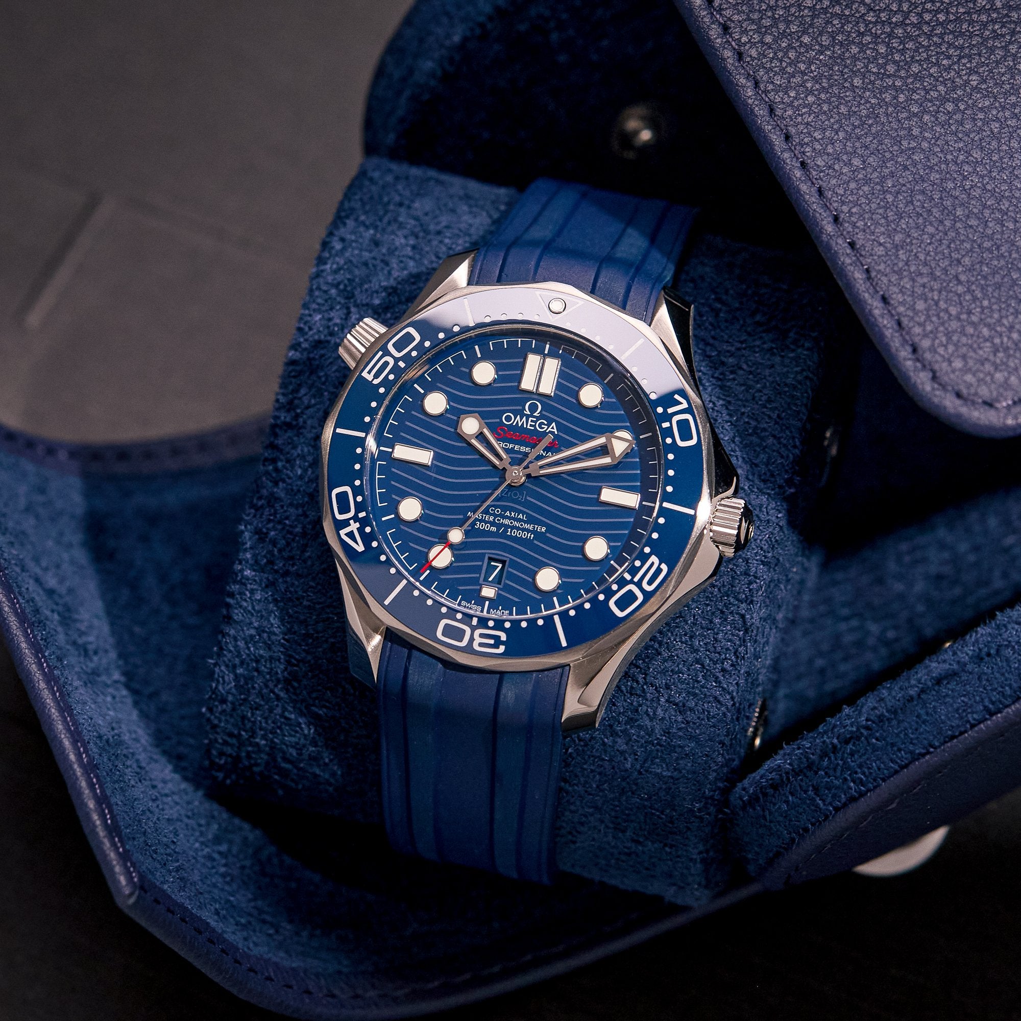 Sapphire crystal dengan lapisan anti-reflektif melindungi dial dari goresan, sementara bezel keramik yang dapat diputar unidirectional memungkinkan pengaturan waktu penyelaman yang mudah. Strap karet biru yang nyaman melengkapi desain sporty, menjadikan jam tangan ini ideal untuk kegiatan di darat maupun di laut. Omega Seamaster Diver 300 M bukan hanya sekadar alat penunjuk waktu, tetapi juga simbol dari semangat petualangan dan gaya hidup aktif.